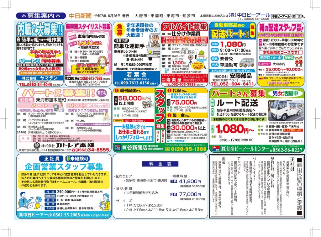 | 折込新聞 | 中日新聞朝刊折り込み |