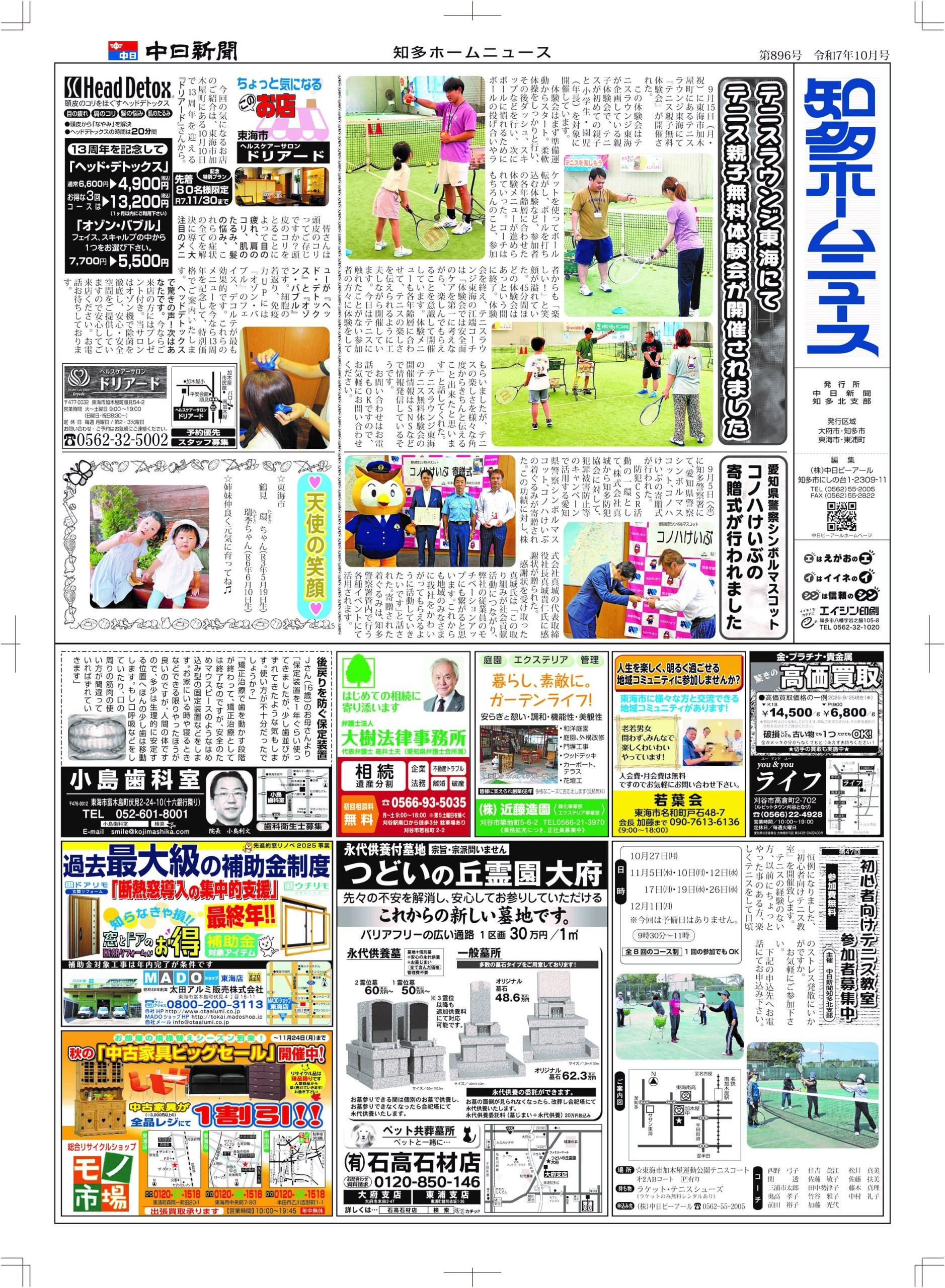 知多ホームニュース10月号 裏面